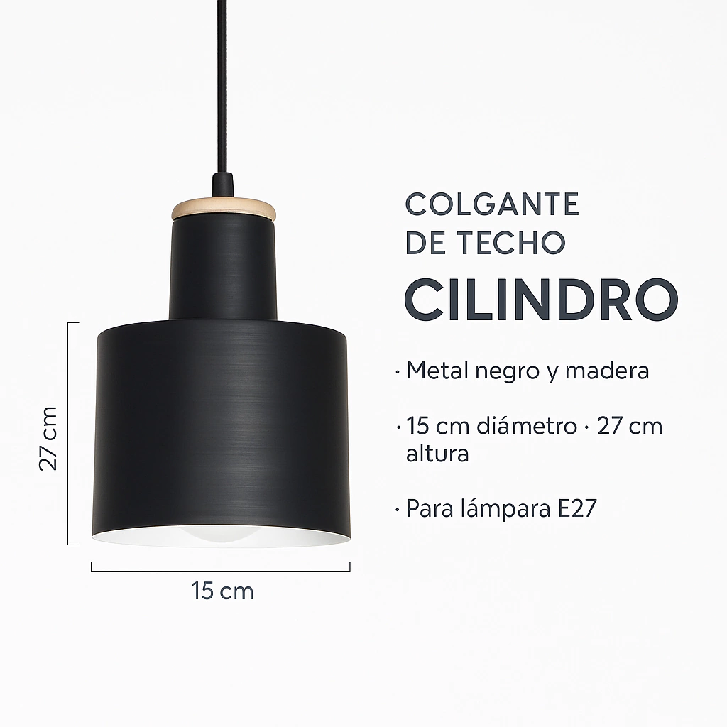 Colgante Cilindro | Diseño moderno en metal negro con detalle en madera