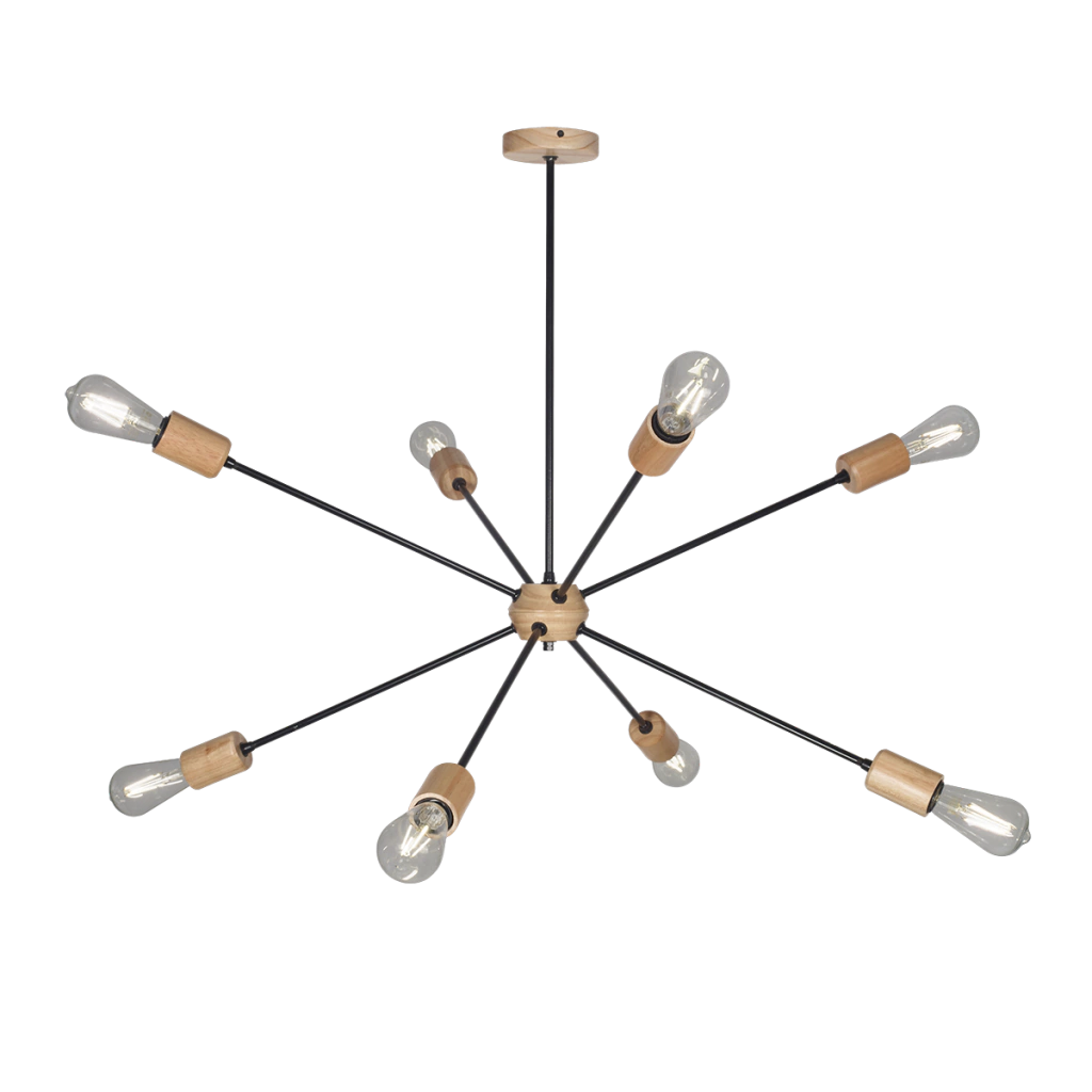 Ilumina tus espacios con la impresionante Lámpara Colgante de 8 Luces. Con un diseño elegante que combina metal en acabados negro o blanco con detalles en madera Paraíso, esta lámpara colgante es perfecta para añadir un toque de sofisticación y estilo a cualquier ambiente de tu hogar.