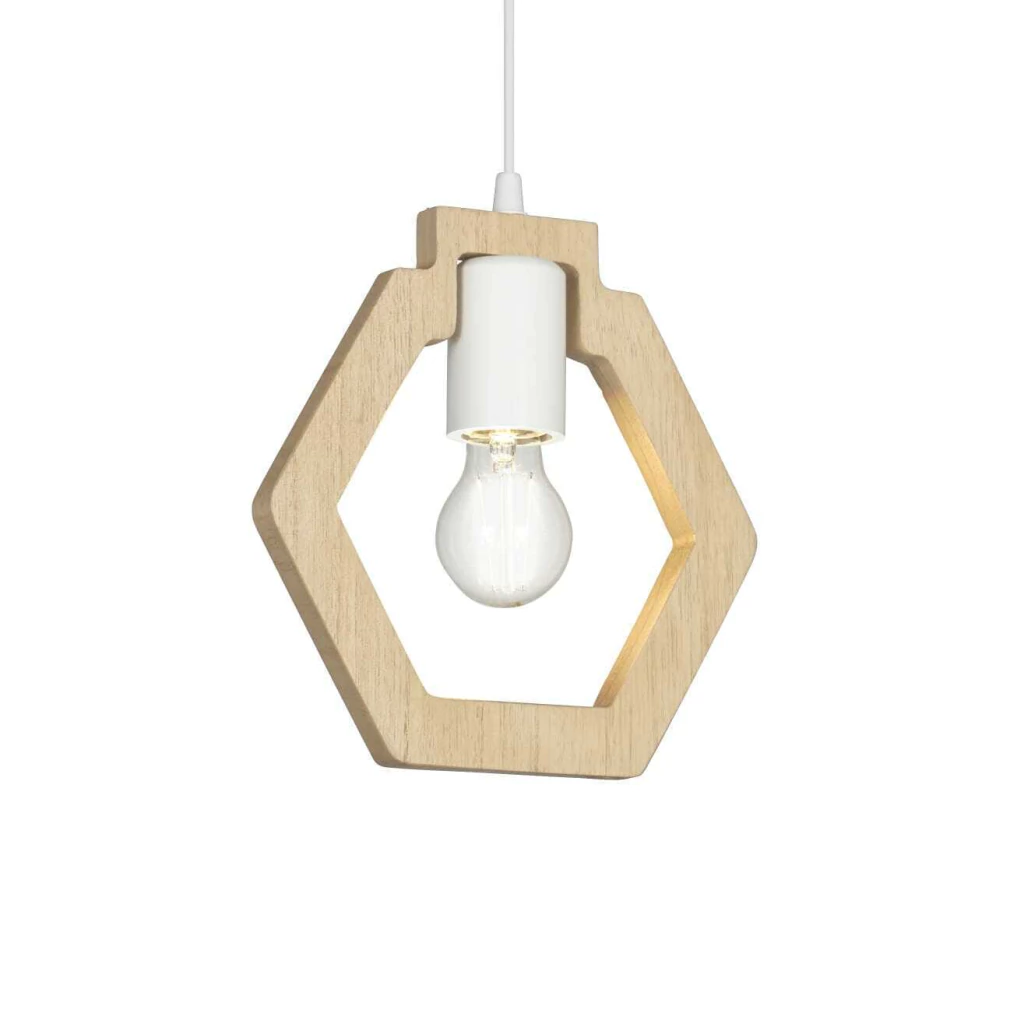 Colgante Geométrico en forma de Pentágono | Diseño moderno en madera Kiri natural