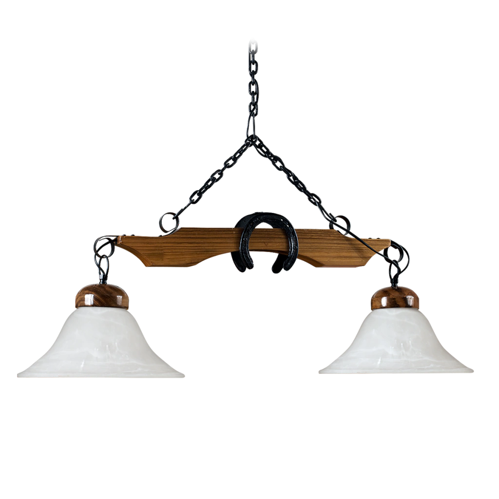 Ilumina y decora tus espacios con la sofisticada Lámpara Colgante de 2 Luces Praga Herradura. Con una estructura en madera Petiribi y tulipas de vidrio en forma de herradura, esta lámpara combina materiales de alta calidad y un diseño moderno, ideal para cualquier ambiente de tu hogar.